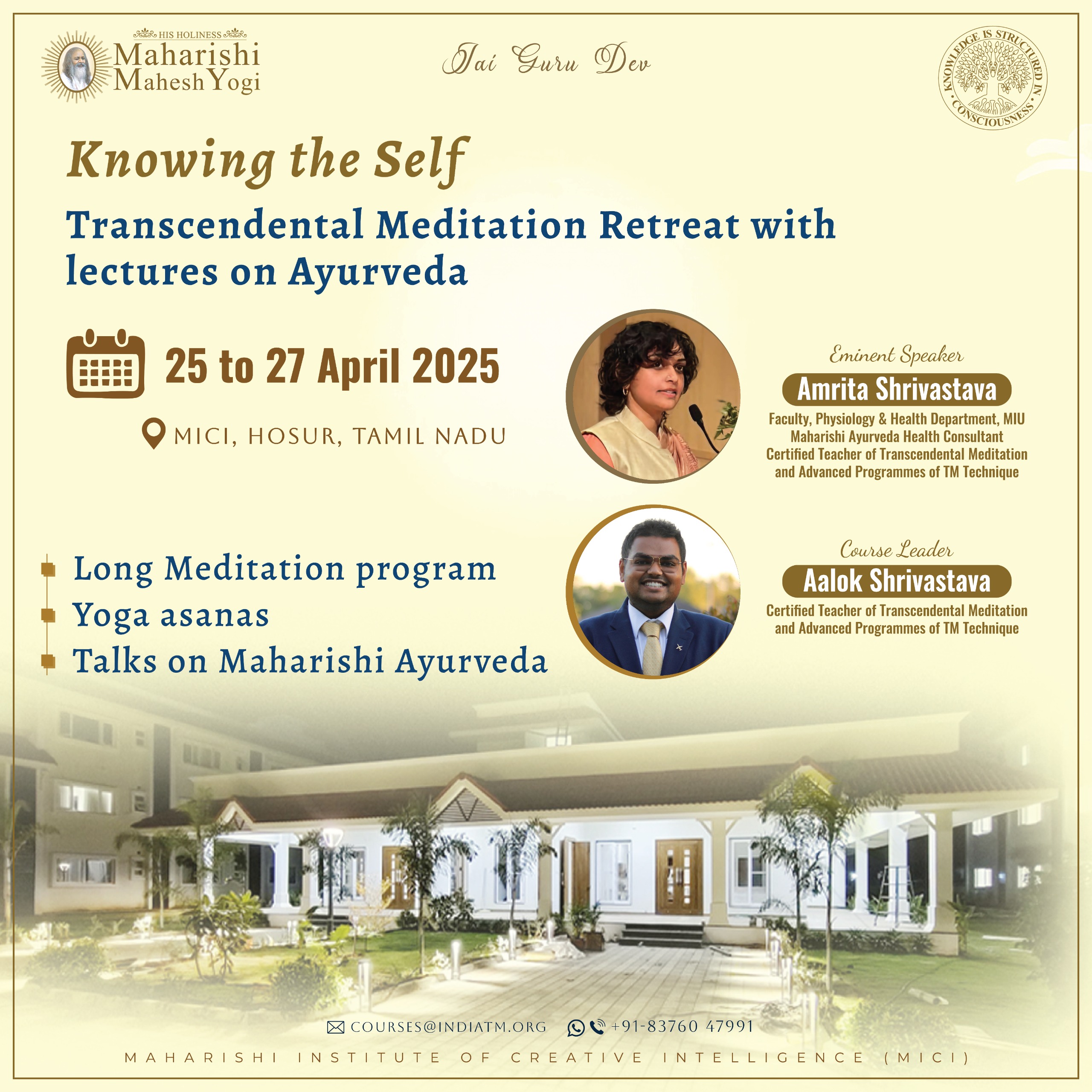 Transcendental Meditation Retreat with lectures by Maharishi Ji on AyurvedaExperience BeingThe 2 Day...